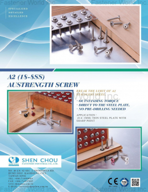 Shen-Chou Fasteners Industrial Co., Ltd., the professional stainless steel screws manufacturer, founded in 1989. We are located ...